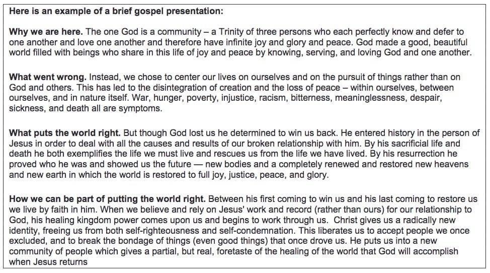 The following is Tim Keller’s “brief gospel presentation.” Count how many times he mentions LOST, SAVED, SIN, HELL, JUDGMENT, SAVIOR, LORD and our need for REPENTANCE. Is this really his Gospel? Is this guy for real?